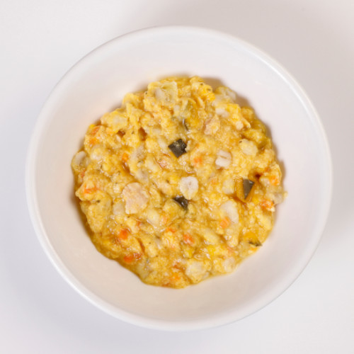 ●鶏肉とやさい:鶏肉、かぼちゃ、にんじん、ブロッコリー、大麦、鶏がらスープ、米油、フラクトオリゴ糖、寒天、こんにゃく粉、乳酸菌(フェカリス菌、クリスパタス菌)