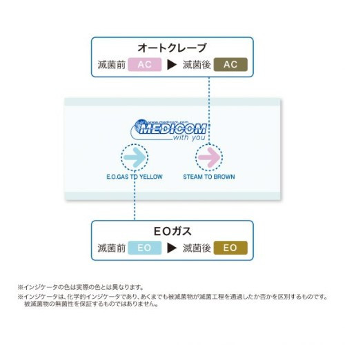 注)インジケーターは科学的インジケーターであり、あくまでも被滅菌物が滅菌工程にさらされたか否かを区別するもので、無菌性を保障するものではありません。