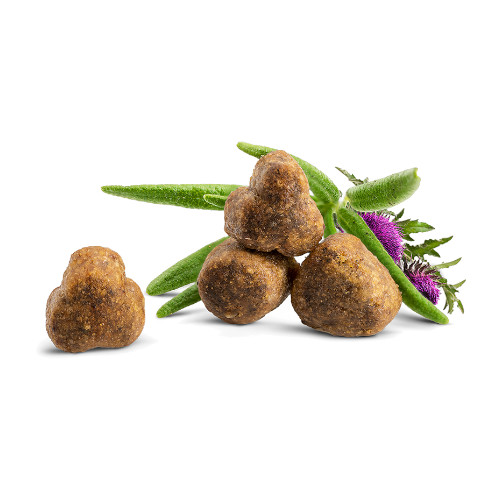 ●原材料:ポルトリープロテイン*(25%)、コーン粉、コーン、米、グリーブス(脱脂ハラミ肉)、リグノセルロース、サーモンミール(5%)、ライスプロテイン*、油脂類、加水分解プロテイン*、ヘモグロビン*、ビートファイバー*、アップルポマス*(0.5%)、全卵パウダー、塩化カリウム、サッカロマイセスセレビシエ*、塩化ナトリウム、海藻*、亜麻仁(0.16%)、チコリパウダー(0.15%)、ユッカシジゲラ*(0.1%)、緑イ貝*(0.05%)、ミルクシスル、イースト抽出物*(0.02%)アーティチョーク、タンポポ、ショウガ、カンバ葉、ネトル、カモミール、コリアンダー、ローズマリー、セージ、リコリス根、タイム、ビタミン類(ビタミンA、ビタミンD3、ビタミンE、ビタミンB1、ビタミンB2、ビタミンB6、ビオチン、Dパントテン酸カルシウム、ナイアシン、ビタミンB12、ビタミンC、葉酸)、ミネラル類(鉄、銅、亜鉛、マンガン、ヨウ素酸カルシウム、亜セレン酸ナトリウム)その他栄養素(DLメチオニン、タウリン、コリン)、天然由来トコフェロール(酸化防止剤として)(*乾燥)