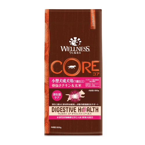 《ウェルネスコアダイジェスティブヘルスは、犬猫の祖先は肉食であるという栄養学的哲学をもとに、消化に優れた原材料を厳選し、高消化性に設計された消化管の健康に配慮した製品です。お腹の健康維持をサポートします。水溶性食物繊維を含む大麦(穀物)を配合》