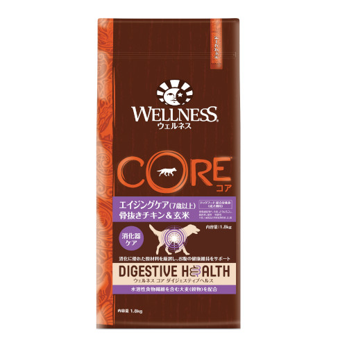 《ウェルネスコアダイジェスティブヘルスは、犬猫の祖先は肉食であるという栄養学的哲学をもとに、消化に優れた原材料を厳選し、高消化性に設計された消化管の健康に配慮した製品です。お腹の健康維持をサポートします。水溶性食物繊維を含む大麦(穀物)を配合》
