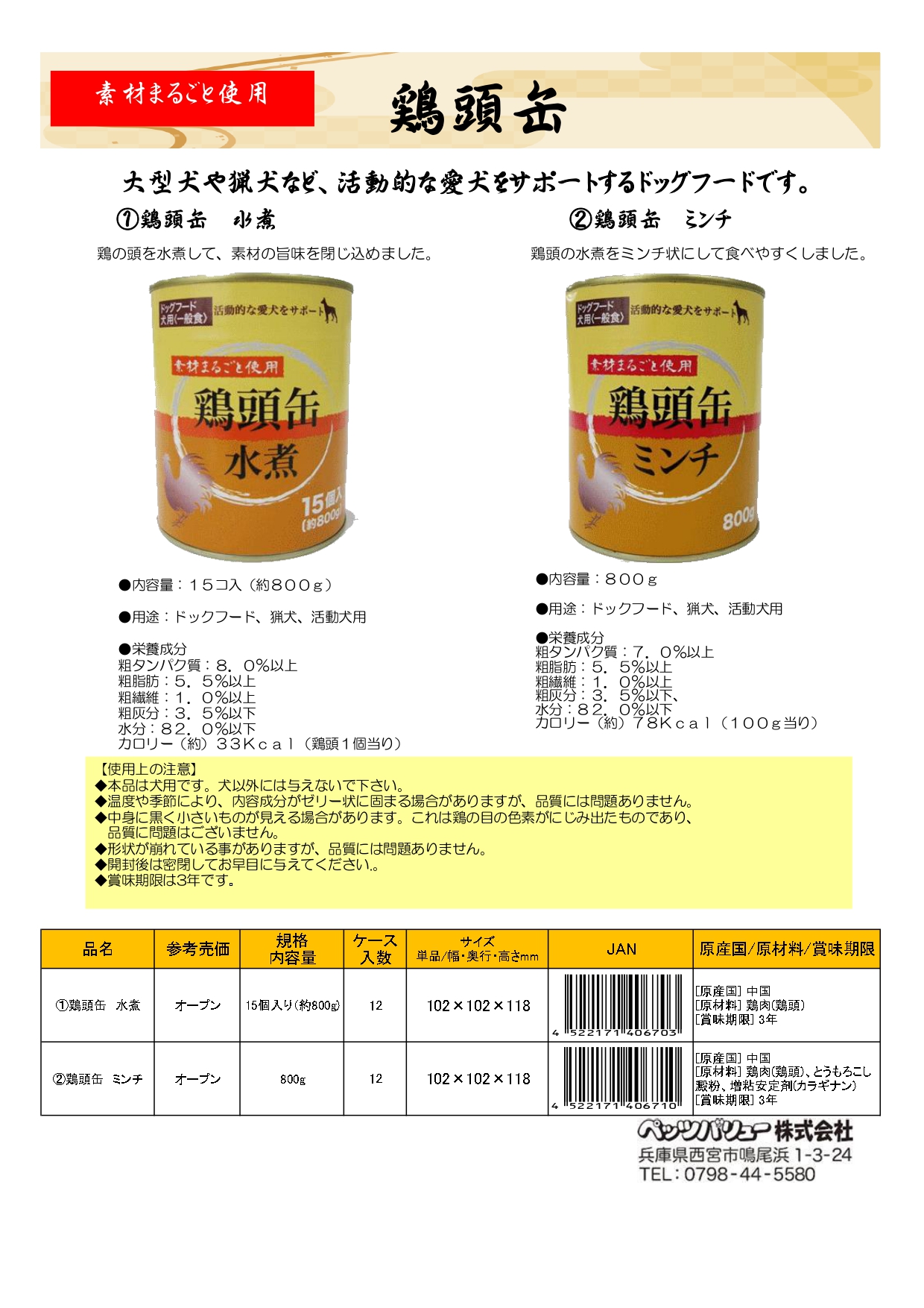 ●原材料:鶏肉(鶏頭)