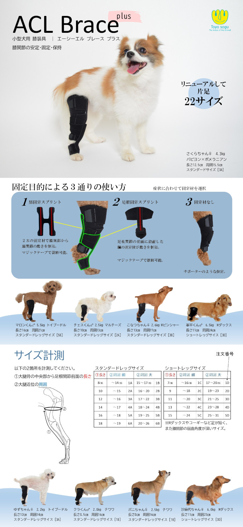 ※新しい ACL Brace は小型犬のみが対象となりました。中・大型犬は、胴体ハーネス付きの Neo ACL のご利用をお願いします。