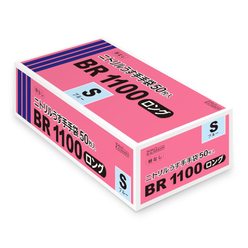 BR1100ロング 粉なしニトリルうす手手袋50枚入り