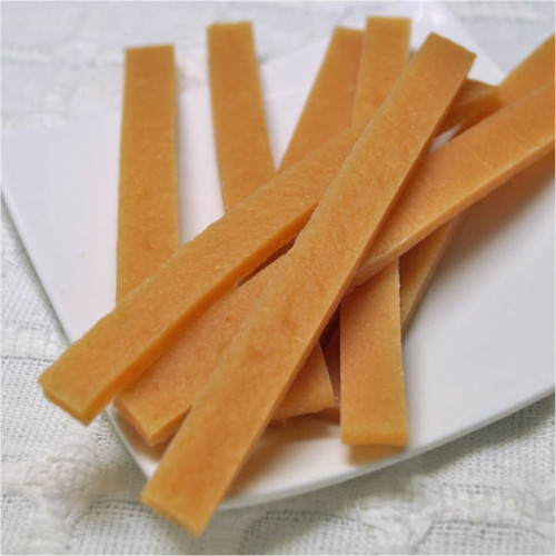 ●原材料(成分):鶏肉(胸肉、ササミ)、小麦粉、グリセリン、トレハロース、プロピレングリコール、ミネラル類(ナトリウム)、リン酸塩(Na)、酸化防止剤(ビタミンC)、発色剤(亜硝酸ナトリウム)、調味料、着色料(赤102、黄5)