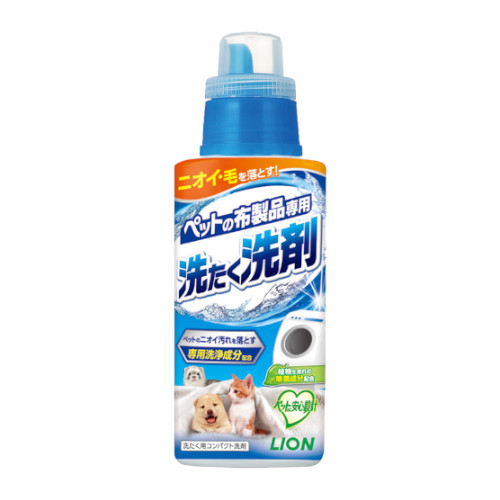 ペット用布製品を洗うための洗剤。ニオイのもとまでスッキリ落とす。抗菌成分、除菌成分配合。