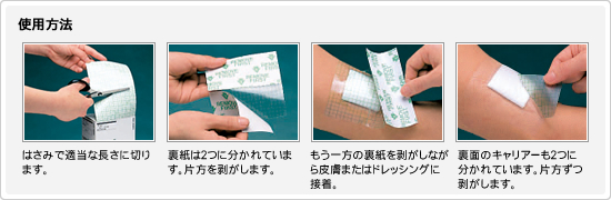 ●防水性とバクテリアバリアの特性を持ったオプサイトフィルムを使用していますので、外部からの水、排泄物、バクテリアによる汚染を防ぎます。