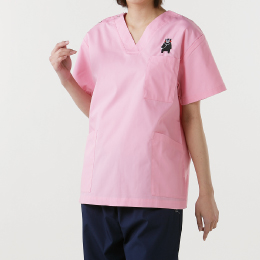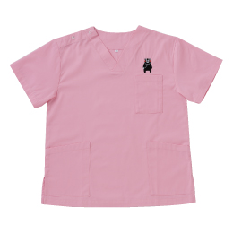 ●両脇にスリット入りで動きやすくデザインされた男女兼用スクラブ。