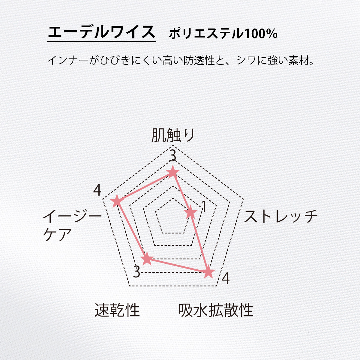 ●制菌加工、透け防止素材、防汚・防縮、制電性、吸汗性、総ゴム、両脇ポケット、ウエストひも入り